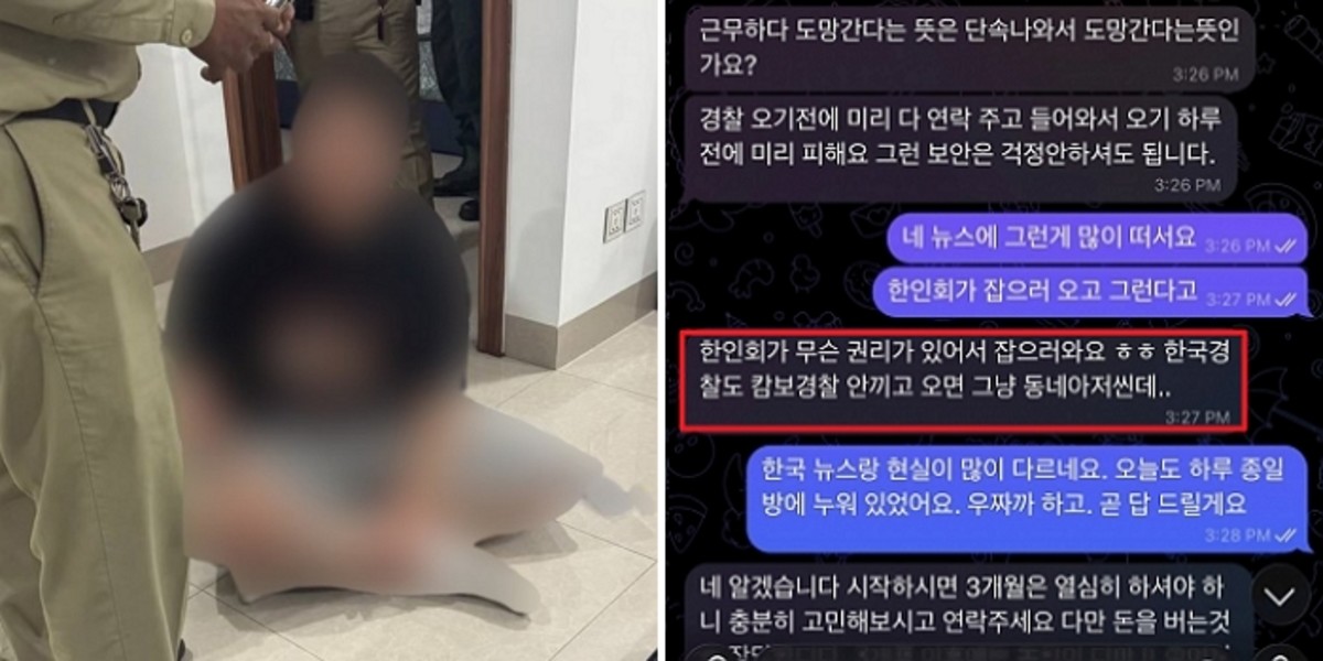 모집책은 A씨의 우려에 대해 "뉴스에서 보이는 그런거 아니고, 한국인 10명 정도 있는 분위기 좋은 사무실이고, 감금 이런 거 절대 없다"며 안심시키려 했습니다. A씨가 "실제 근무하다 도망가고 그런 일이 흔하지 않죠? 뉴스에 하도 나와서"라고 의심하자, 모집책은 "경찰 오기 전에 미리 다 연락 주고 들어와서, 오기 하루 전에 미리 피한다. 한국 경찰도 캄보디아 경찰 안 끼고 오면 그냥 동네 아저씨"라며 현지 경찰과의 유착 관계를 시사했습니다.