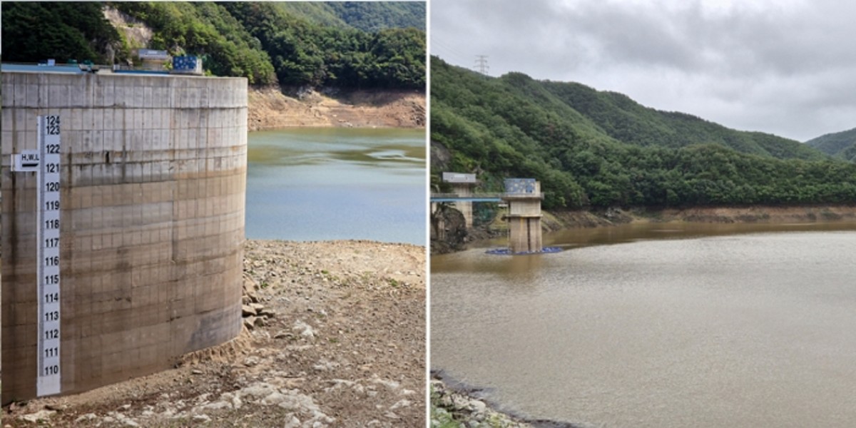 불과 한 달 전까지 극심한 가뭄으로 쩍쩍 갈라진 바닥을 보였던 저수지의 모습과는 완전히 달라진 상황입니다.