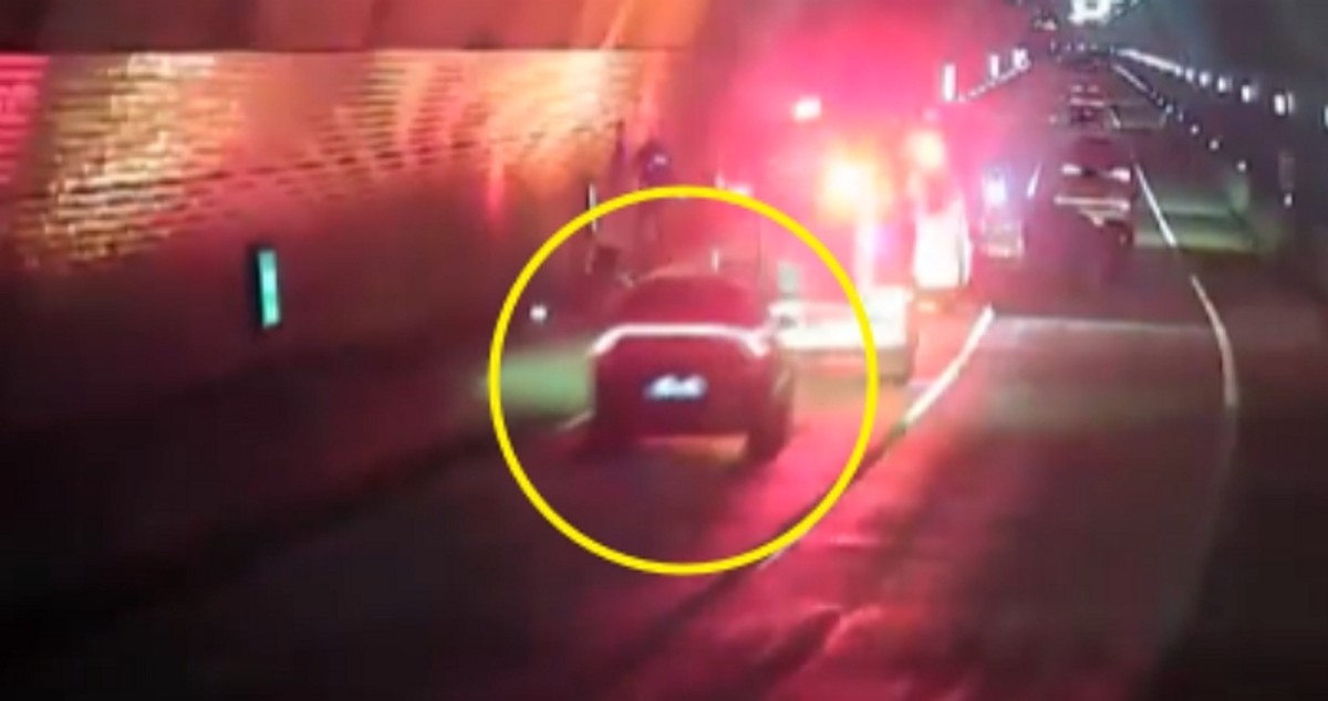 승용차 한 대가 빠른 속도로 주행하다 미끄러져 터널 벽에 충돌하는 1차 사고가 발생했습니다. 소방차들이 현장에 도착해 사고 수습 작업을 진행하던 중, 예상치 못한 2차 사고가 벌어졌습니다.