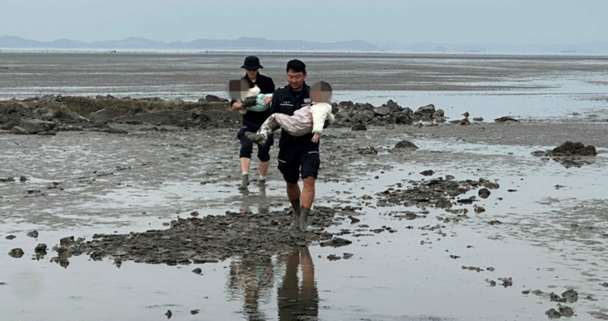 충남 보령시 대천항 인근 해안도로 앞 갯벌에서 발생한 고립 사고로 일가족 3명이 무사히 구조되었습니다.