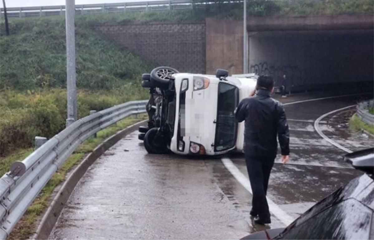 차량이 운전석 쪽으로 전도되면서 A씨의 어머니는 운전석과 바닥 사이에 갇히게 되었습니다. 다행히 통행량이 있는 시간대였기 때문에 지나가던 차량들이 멈춰 섰고, 몇몇 사람들이 차를 들여다보며 상황을 파악했습니다.