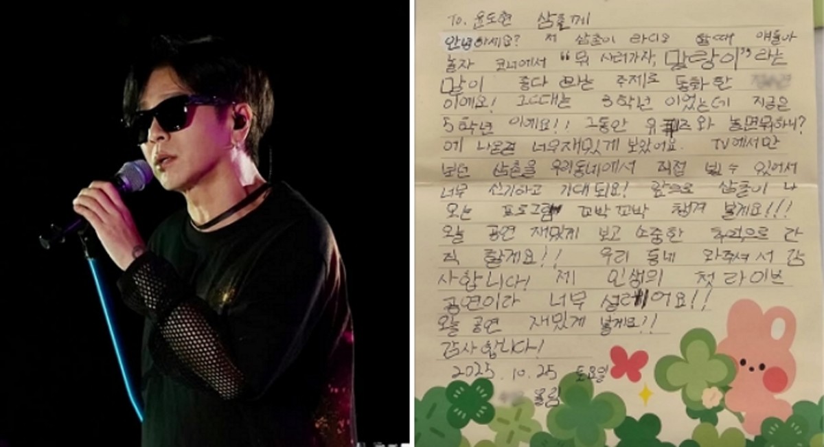 지난 26일 윤도현은 인스타그램 스토리를 통해 특별한 설명 없이 팬레터 사진 한 장을 게시했습니다.