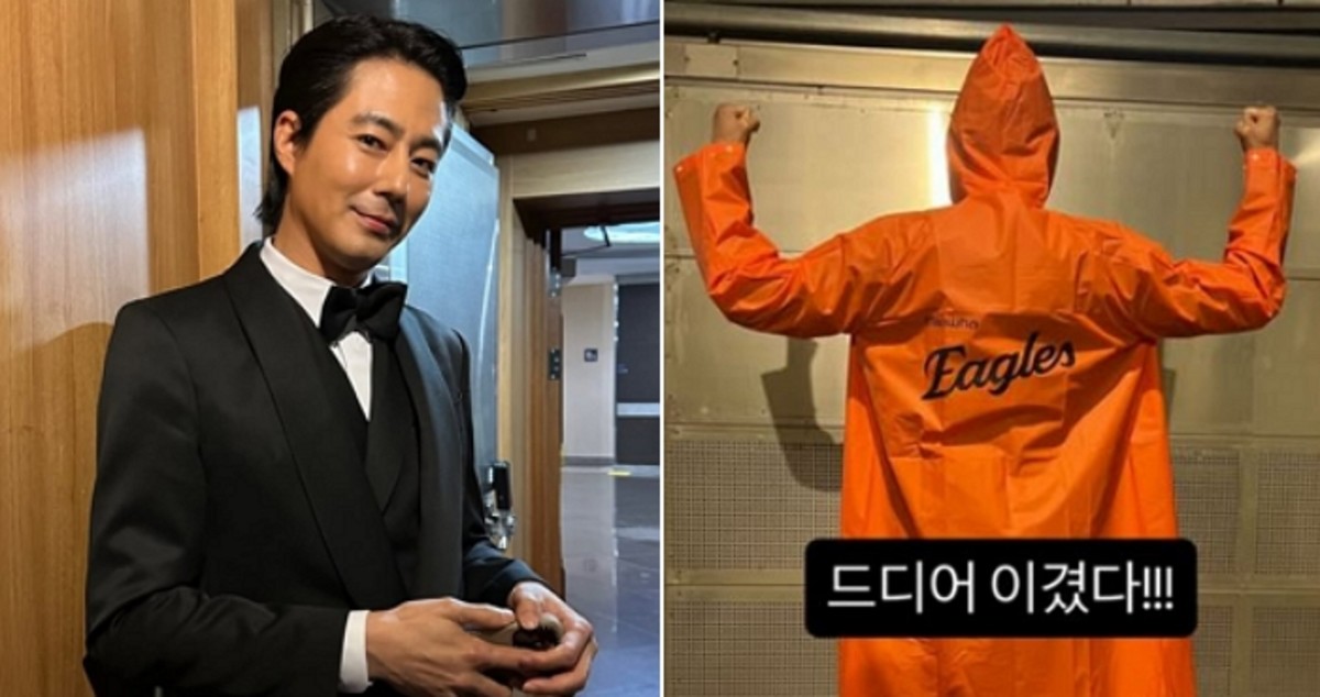 배우 조인성이 한화 이글스의 한국시리즈 첫 승리 소식에 열광적인 반응을 보였습니다.