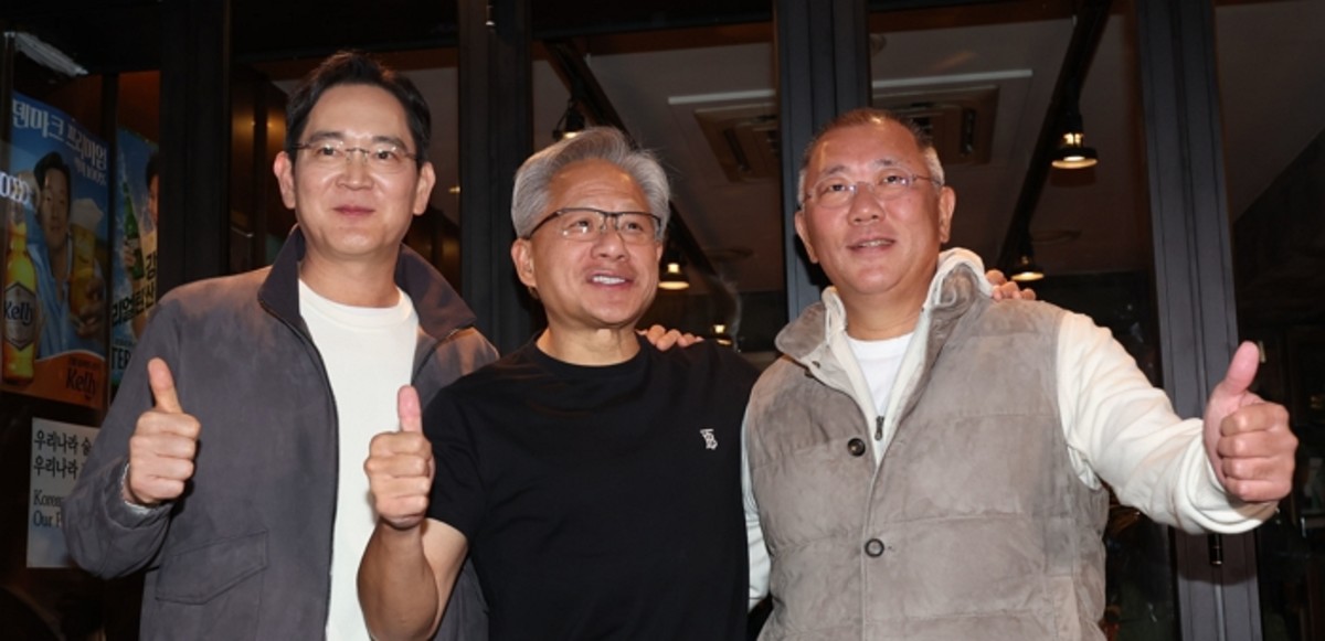 15년 만에 한국을 찾은 엔비디아 젠슨 황 최고경영자(CEO)가 이재용 삼성전자 회장, 정의선 현대자동차그룹 회장과 함께 서울 강남의 한 치킨집에 나타났습니다.