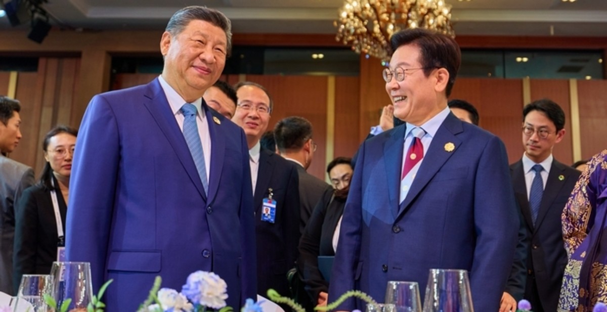 이재명 대통령과 시진핑 중국 국가주석이 1일 경북 경주시 화백컨벤션센터(HICO)에서 열린 2025 아시아태평양경제협력체(APEC) 정상회의 제2세션에서 악수를 하고 있다. 2025.11.1 / 뉴스1(대통령실 제공)