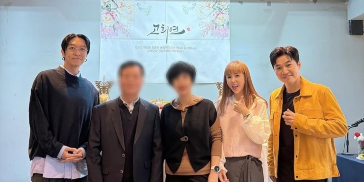 공개된 사진 속에는 신지와 그의 부모님이 중앙에 서 있고, 양쪽 끝에는 빽가와 김종민이 함께 자리하고 있어 보는 이들의 시선을 사로잡았습니다.
