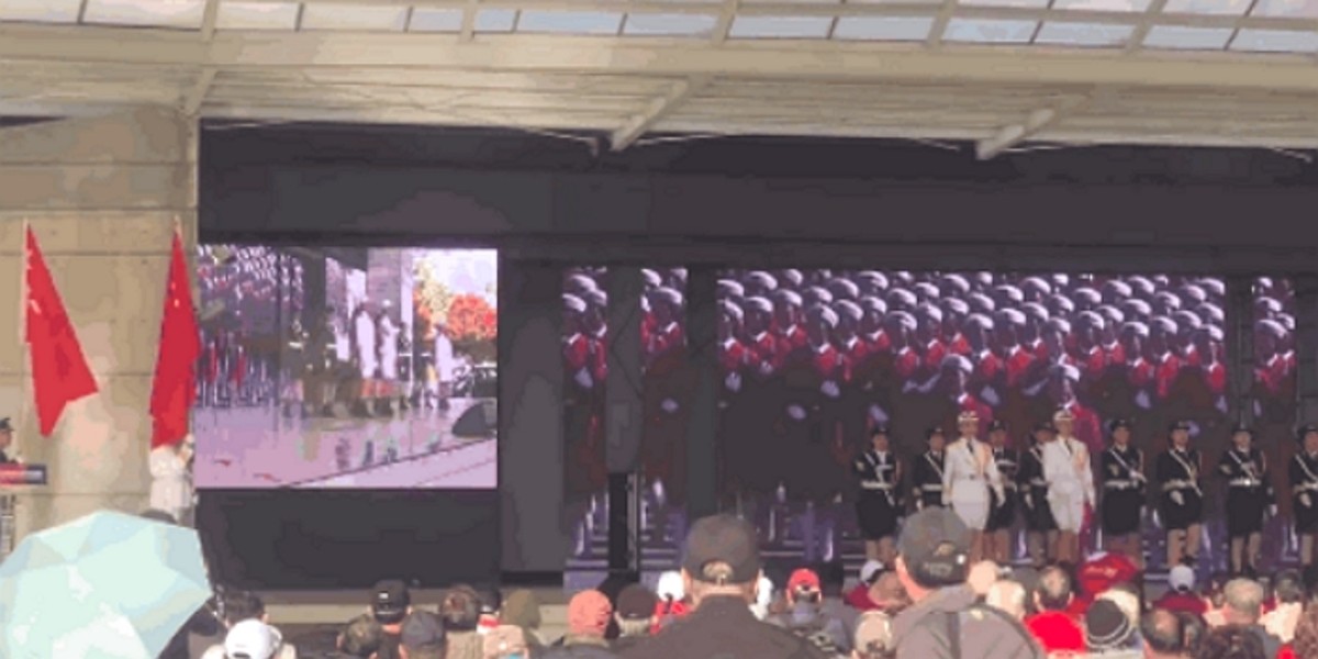 무대 뒤편 대형 화면에는 중국군 행진 장면이 상영됐고, 특히 중국 인민해방군을 상징하는 깃발이 등장해 시민들의 거센 비판을 받았습니다.