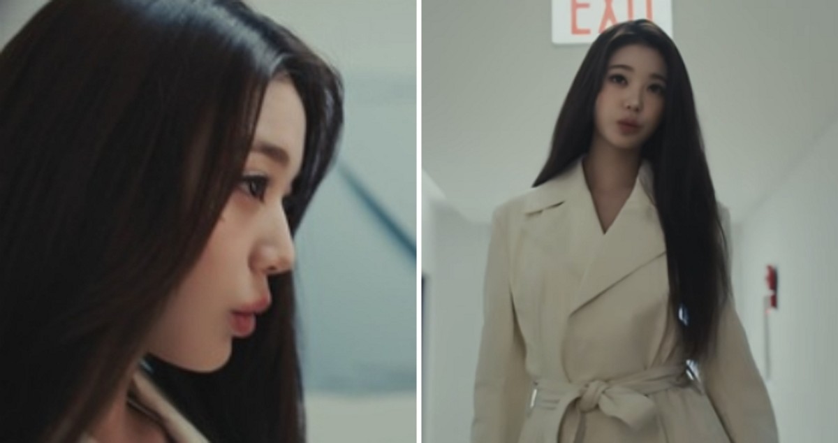 조용한 복도에 울려 퍼지는 휘파람 소리와 규칙적인 구두 소리가 긴장감 넘치는 분위기를 조성했으며, 장원영의 세련되고 고급스러운 아우라가 영상 전체를 지배했습니다.