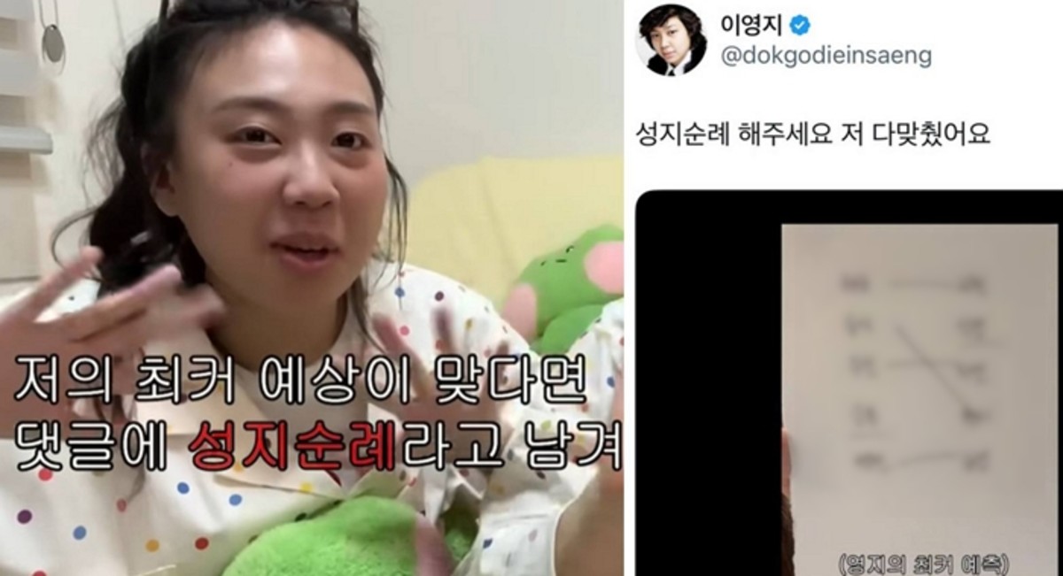21일 이영지는 자신의 X(구 트위터) 계정을 통해 "성지순례 해주세요. 저 다 맞혔어요"라는 메시지와 함께 특별한 사진 한 장을 공개했습니다.