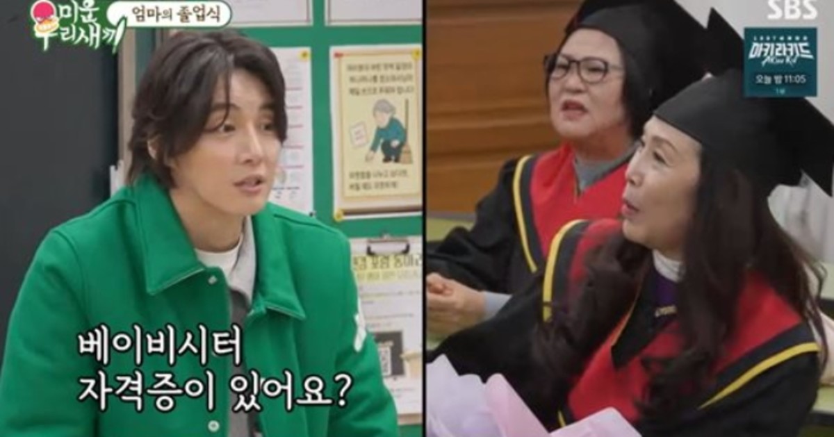 몇몇 학우들이 손주를 봤다고 말하자 윤시윤의 어머니는 "나는 손주 보면 봐주려고 베이비시터 자격증도 따놨다"고 밝혀 윤시윤을 놀라게 했습니다. 윤시윤은 "그걸 또 언제 땄냐. 왜 공부를 몰래 하냐"며 당황스러워했습니다.
