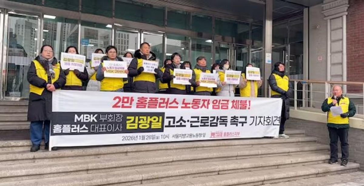 26일 민주노총 마트노조 홈플러스지부는 기자회견을 통해 김광일 홈플러스 대표이사를 근로기준법 위반 및 부당노동행위 혐의로 서울남부고용노동지청에 고소했다고 밝혔습니다.