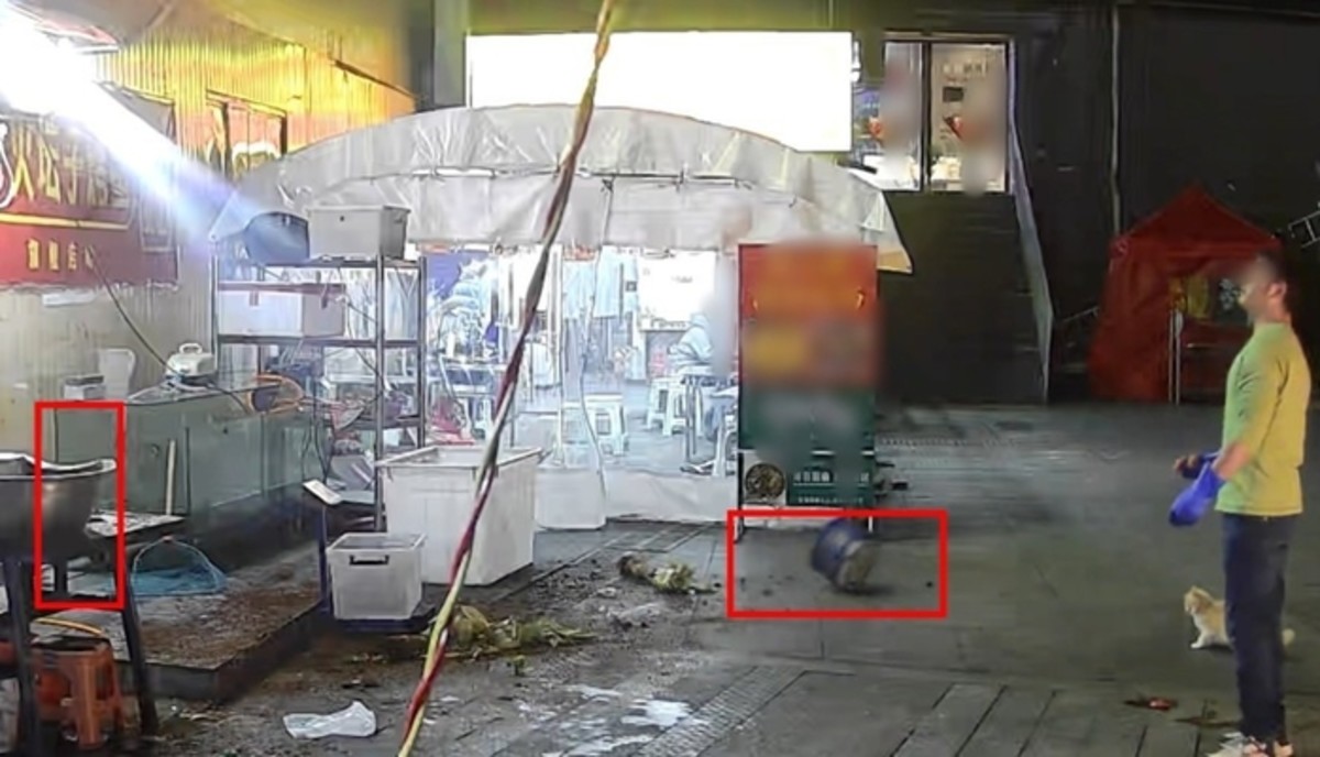 중국 구이저우성의 한 생선구이 식당에서 길고양이에게 먹이를 주려던 사장이 떨어지는 화분을 간발의 차이로 피하는 아찔한 순간이 포착되어 화제가 되고 있습니다.
