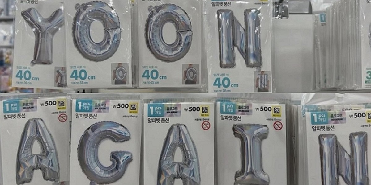 윤석열 전 대통령의 지지자들이 생활용품 매장 다이소에서 알파벳 풍선을 이용해 정치적 메시지를 만드는 행위가 확산되고 있습니다.