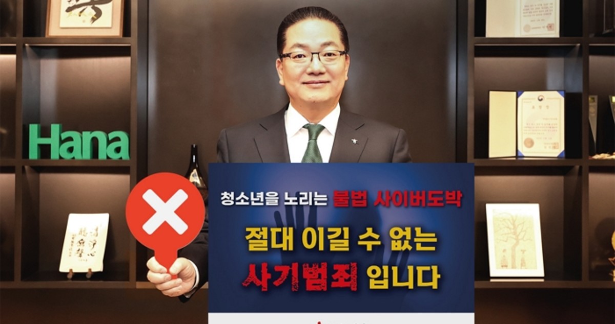 이호성 하나은행장이 청소년 불법 사이버 도박 근절을 위한 사회적 캠페인에 적극 동참하며 금융업계의 사회적 책임을 실천하고 있습니다.