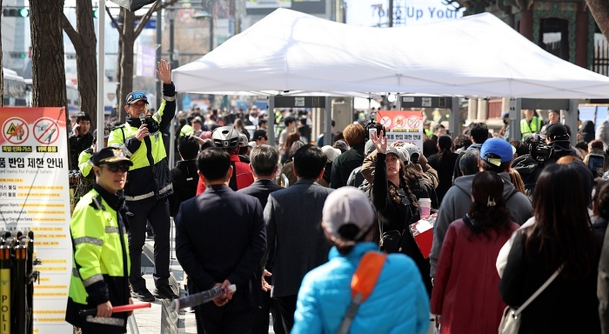 경찰은 게이트 안팎에서 보행 흐름이 한곳에 몰리지 않도록 통행을 유도하며 인파를 관리하고 있다. 다만 오후 들어 유동 인구가 빠르게 늘면서 일부 게이트 뒤로 긴 대기줄이 생겼고, 통행자들 사이에서는 불만도 터져 나왔다.